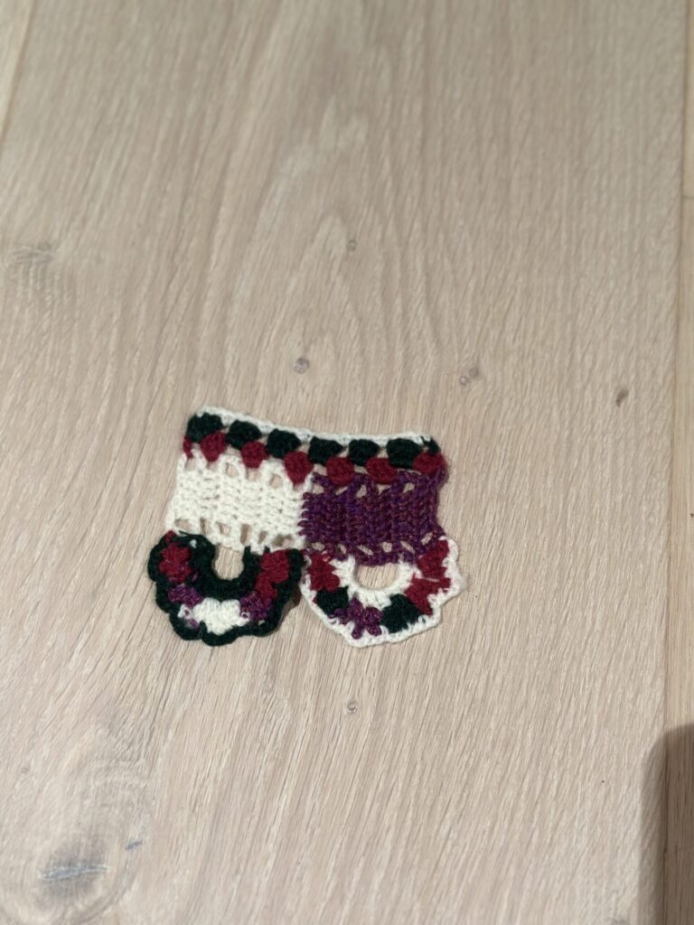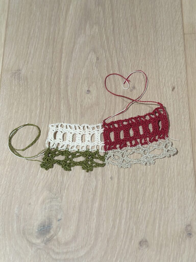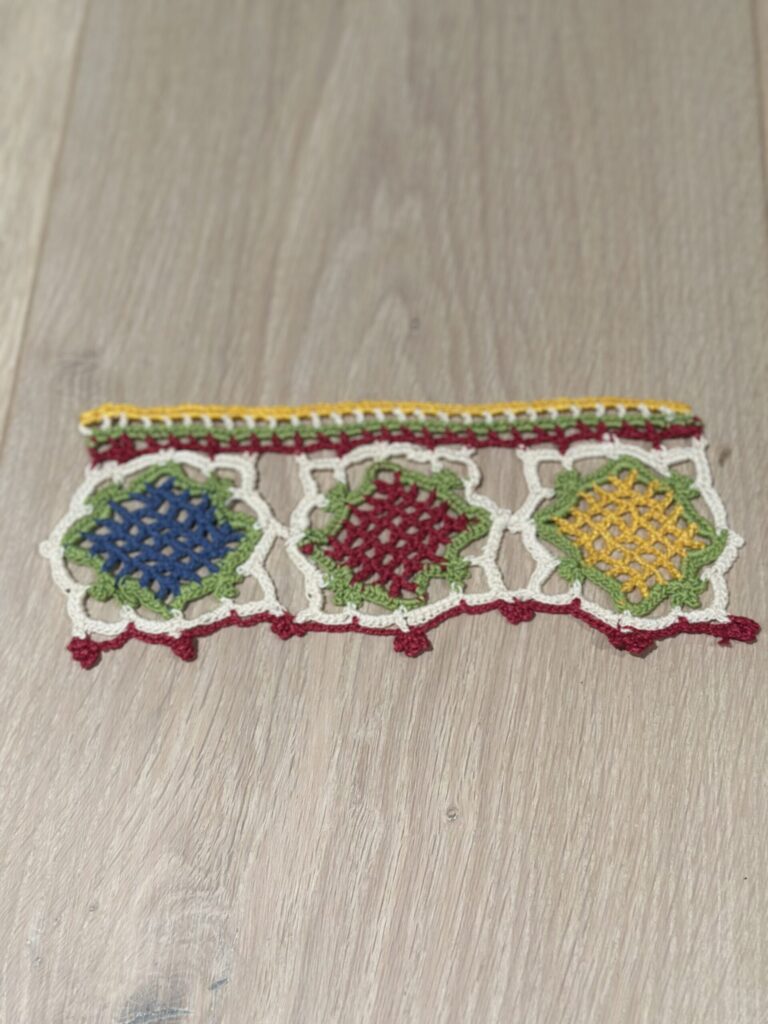 Ühe motiivi laius on ca. 4,8cm ja seega kokku heegeldan 13 motiivi.Heegeldamise tööproovid