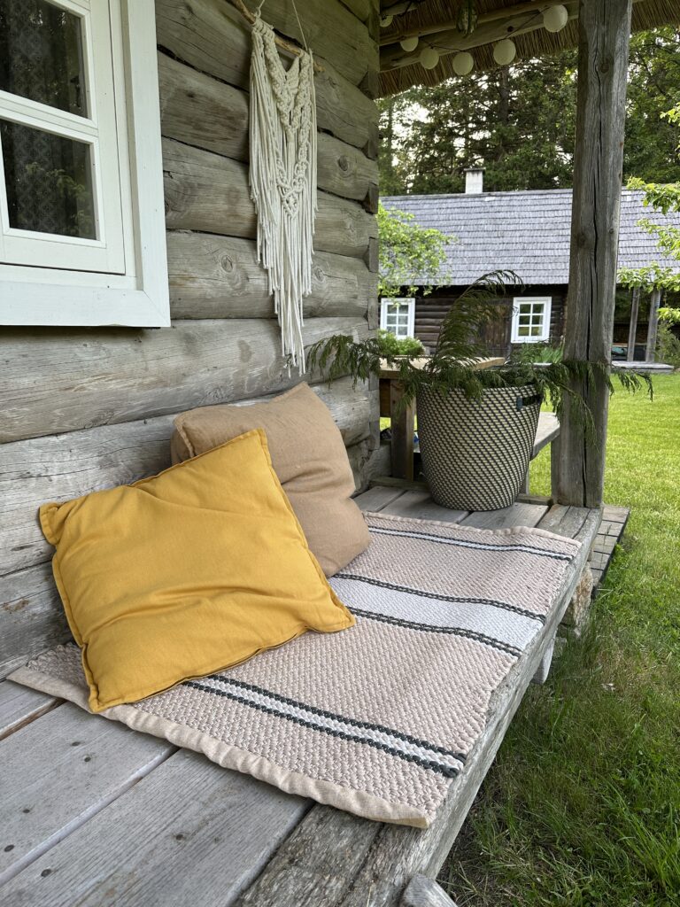 Aasta 2024 lõpus jõudsid minu koju esimesed kangasteljed ning nende sisse õnnistamiseks kudusin esimese tööna tillukese kaltsuvaiba, mida kasutan seal kus vaja.
