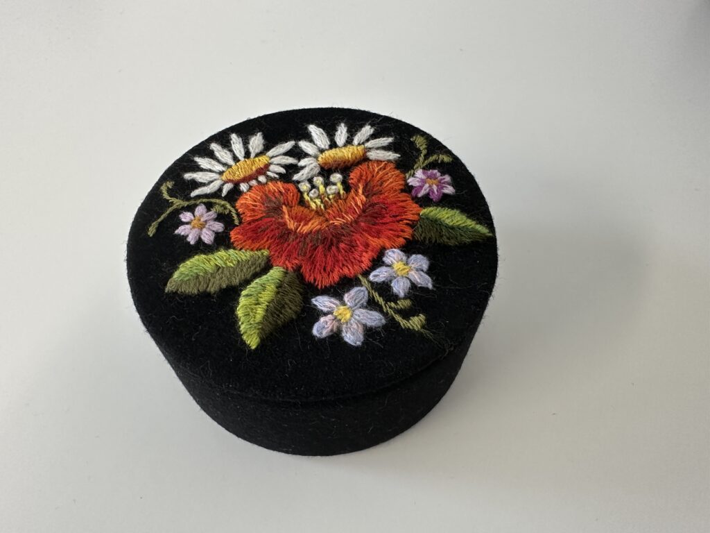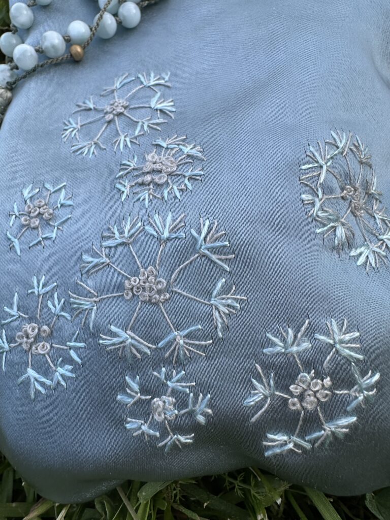 Tikkimine Ülevaade tikkimise töödest Töö etapid: Materjali valiktikkiminetikandi viimistlemine (sõlmimine, otste peitmine)kanga ja voodrikanga lõikamine mõõtukoti õmblemine Ajakulu:Tikkimine: 7 tundiÕmblemine: 3,5 tundi Esitlus tehtud tööst Tikitud ehtekott Eseme nimetus: EhtekottKasutusala: isiklike väärisesemete hoidmiseksMõõdud: 19 x 11 cmMaterjal: polüester kangas, puuvillane vooderKasutatud tikandi liik ja pisted: eelpiste (lille õielehed) ja sõlmpiste (lille südamik)Kasutatud tikkimismaterjalid: mulinee niit (ühekordne), siidniit Tikitud ehtetoos Lilltikand Muhu ainetel Muhu tikand nõuab vilumust, algaja on õnnelik sellega mis välja tuli.